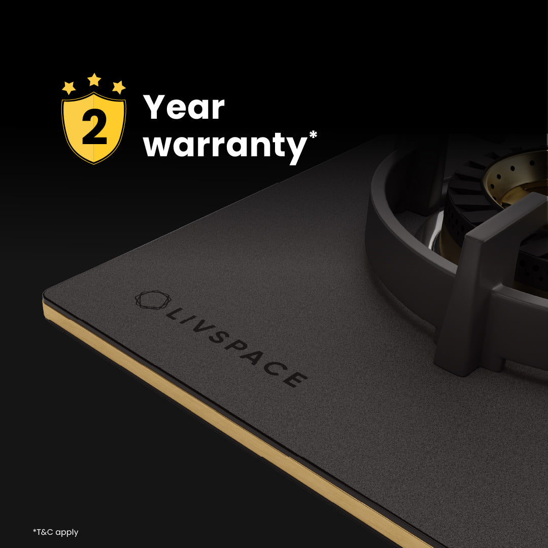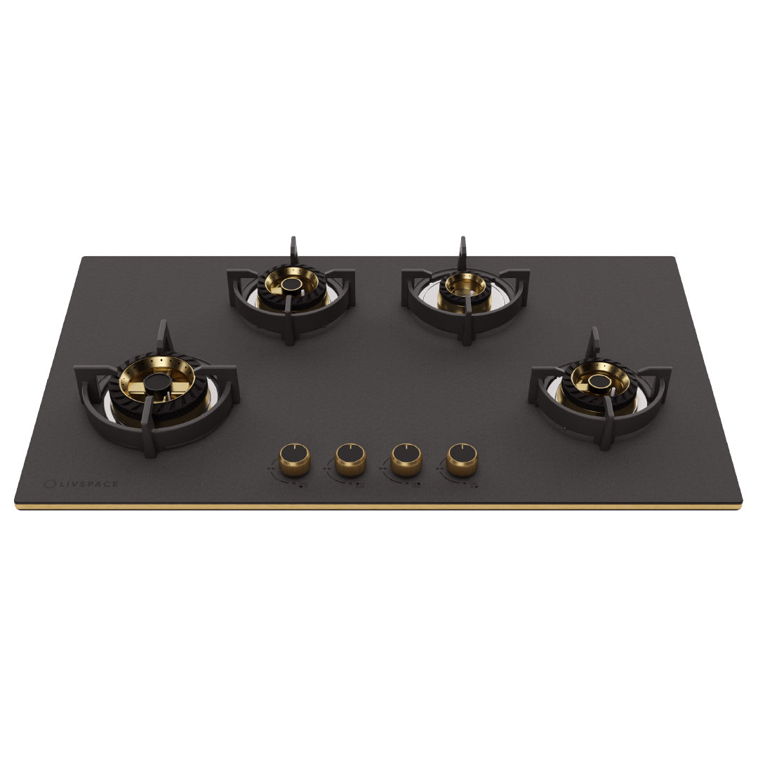 Intellia by Livspace 4 Brass Burner 900mm with Auto Ignition Matt finish Hob | Intellia HB 4B M 90