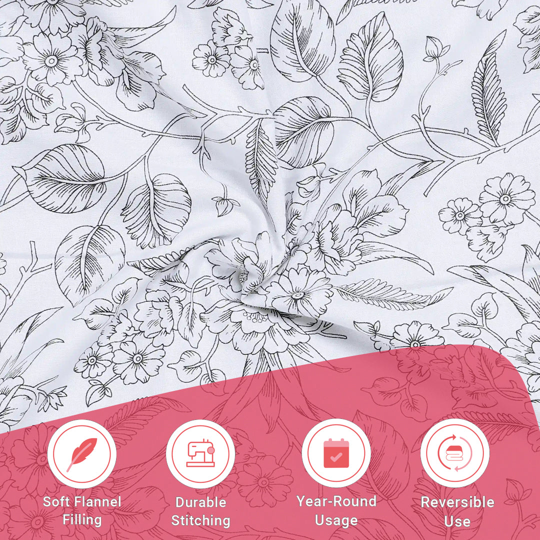 Mishella | Mix & Match Printed Reversible Dohar with Super Soft Flannel Layering - Charcoal Bloom