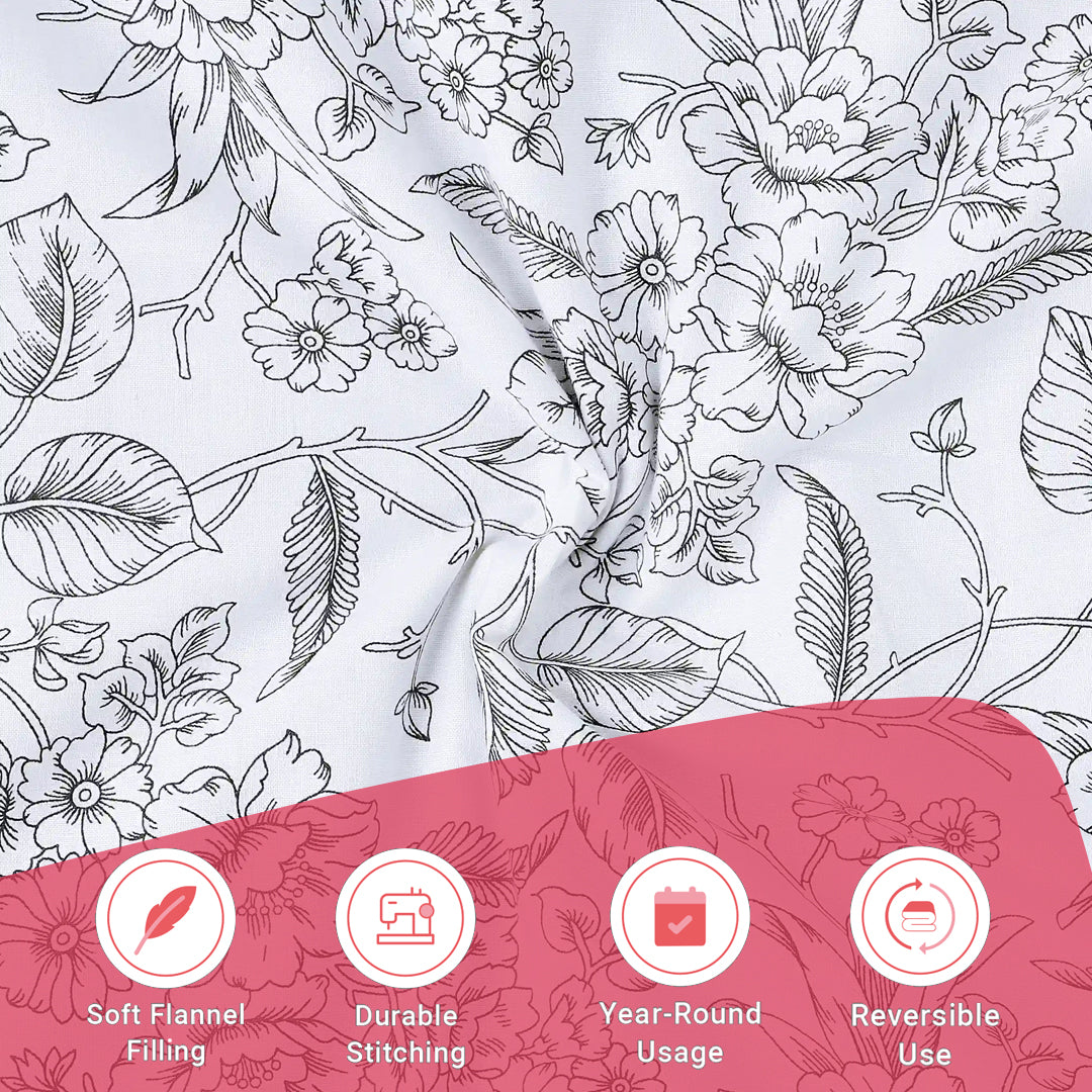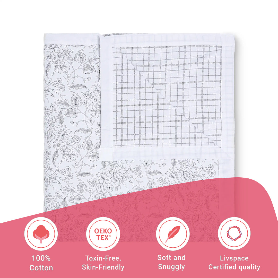 Mishella | Mix & Match Printed Reversible Dohar with Super Soft Flannel Layering - Charcoal Checks